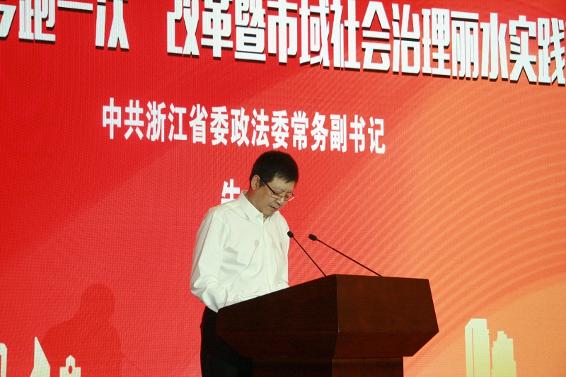中共浙江省委政法委常務(wù)副書記朱晨在致辭中指出,這次研討會(huì)為推進(jìn)市域社會(huì)治理現(xiàn)代化和“最多跑一次”改革搭建了交流平臺(tái),提供了難得的機(jī)遇。在今后的改革中,一是要進(jìn)一步提高站位,拉高標(biāo)桿,加快推進(jìn)社會(huì)治理現(xiàn)代化;二是進(jìn)一步固化經(jīng)驗(yàn)集成創(chuàng)新,總結(jié)麗水市基層社會(huì)治理的成功經(jīng)驗(yàn),及時(shí)將其上升為長(zhǎng)效機(jī)制,進(jìn)一步提升市域社會(huì)治理社會(huì)化、法治化、智能化和專業(yè)化的水平,爭(zhēng)當(dāng)市域社會(huì)治理現(xiàn)代化的排頭兵;三是進(jìn)一步凝聚共識(shí)形成合力,以縣級(jí)矛調(diào)中心建設(shè)為抓手,按照整體自治的要求,加快推進(jìn)社會(huì)治理領(lǐng)域“最多跑一地”改革,構(gòu)建完善一中心四平臺(tái)基層社會(huì)治理新模式,推動(dòng)形成共建、共治、共享的社會(huì)治理新格局。
