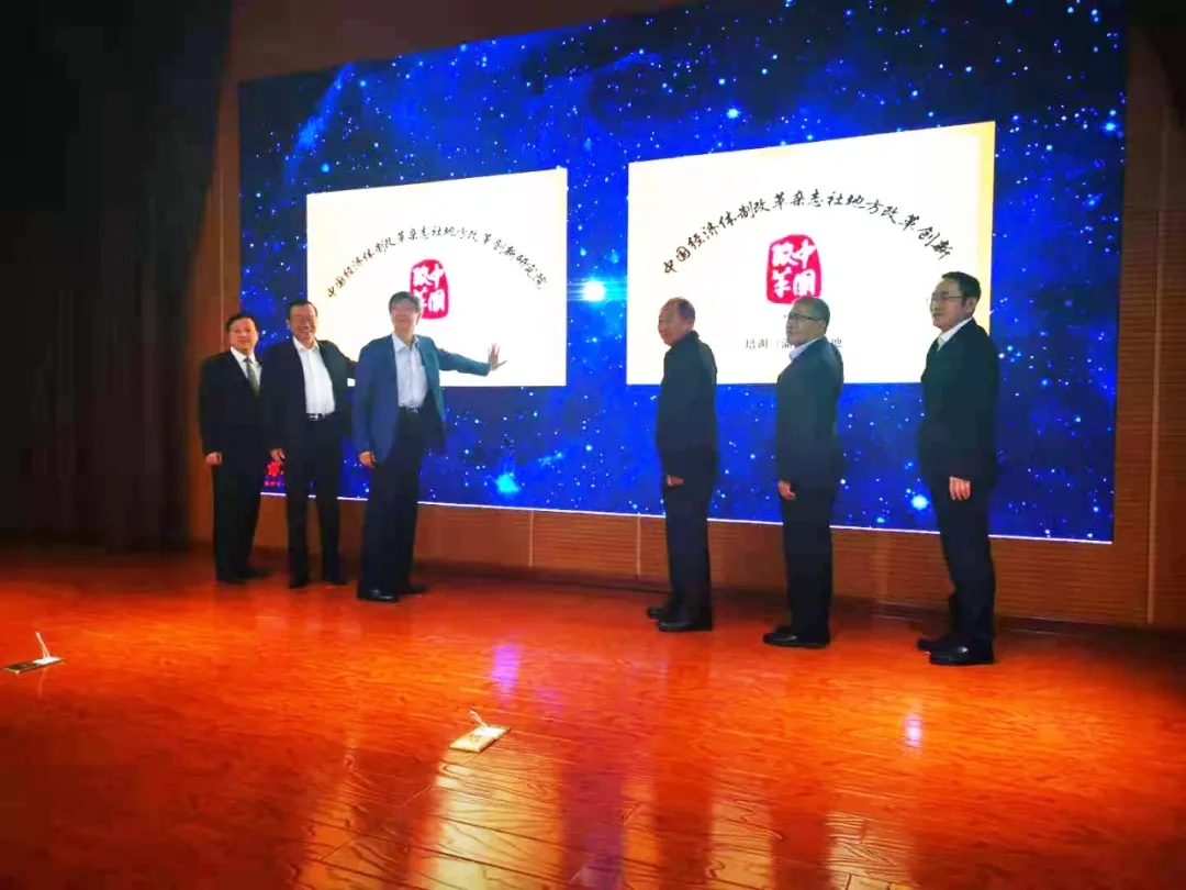 開(kāi)班儀式上,與會(huì)領(lǐng)導(dǎo)專(zhuān)家共同為中國(guó)經(jīng)濟(jì)體制改革雜志社地方改革創(chuàng)新研究院淄博分院、地方改革創(chuàng)新培訓(xùn)(淄博)基地揭牌。