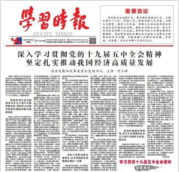 黨的十九屆五中全會(huì)審議通過(guò)了《中共中央關(guān)于制定國(guó)民經(jīng)濟(jì)和社會(huì)發(fā)展第十四個(gè)五年規(guī)劃和二〇三五年遠(yuǎn)景目標(biāo)的建議》,全面擘畫了我國(guó)發(fā)展新征程的宏偉藍(lán)圖,是指引我們實(shí)現(xiàn)第一個(gè)百年奮斗目標(biāo)之后向第二個(gè)百年奮斗目標(biāo)進(jìn)軍的行動(dòng)指南,我們要自覺(jué)把思想和行動(dòng)統(tǒng)一到以習(xí)近平同志為核心的黨中央重大決策部署上來(lái),深入學(xué)習(xí)領(lǐng)會(huì)、全面貫徹落實(shí)。