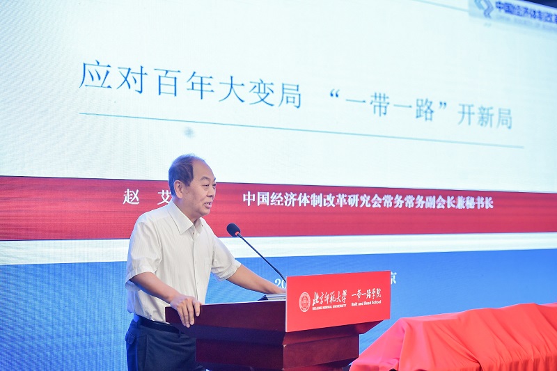 9月3日,我會常務(wù)副會長兼秘書長趙艾應邀出席北京師范大學120周年華誕慶典活動期間舉辦的第四屆京師“一帶一路”論壇暨《高質(zhì)量共建“一帶一路”叢書》發(fā)布會并在開幕式上以“應對百年大變局,一帶一路開新局”為題致辭。