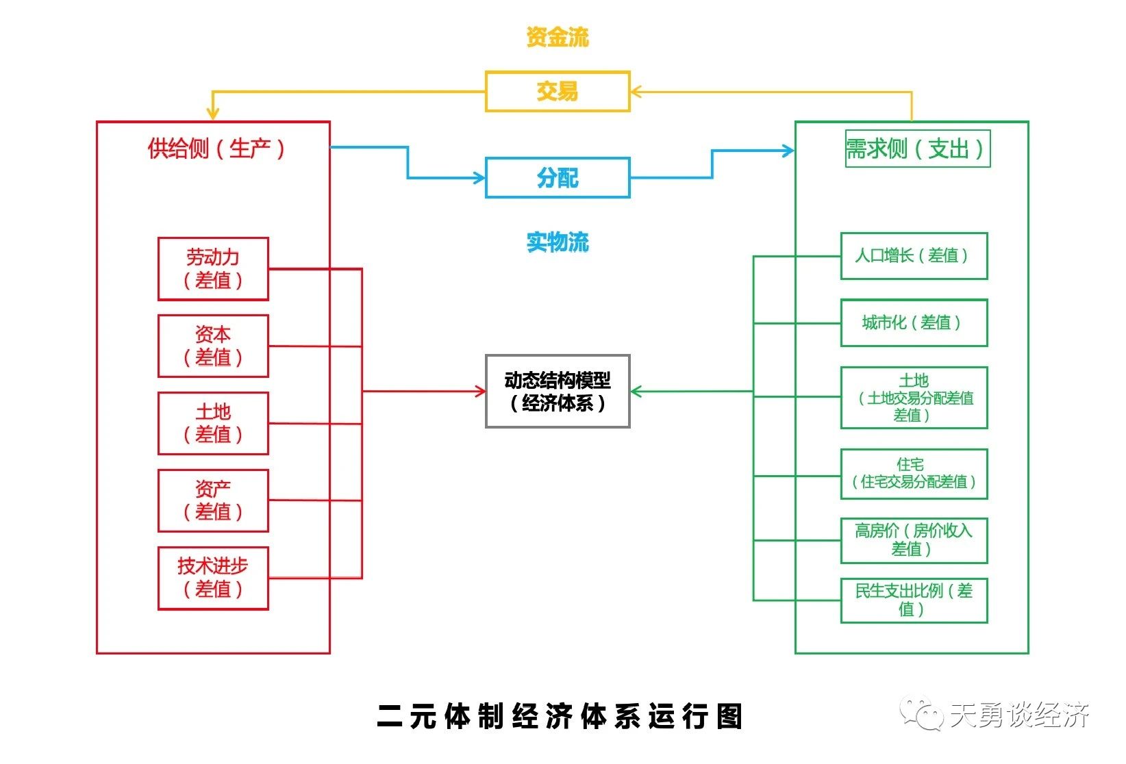 據(jù)此,如上圖所示,與發(fā)展中國家、成熟市場經(jīng)濟國家、瞬時體制轉(zhuǎn)軌國家三類標(biāo)準(zhǔn)經(jīng)濟體不一樣的是,筆者以二元體制差值為主分析變量,建立二元體制供給與需求兩方面均衡的經(jīng)濟運行和增長函數(shù)。