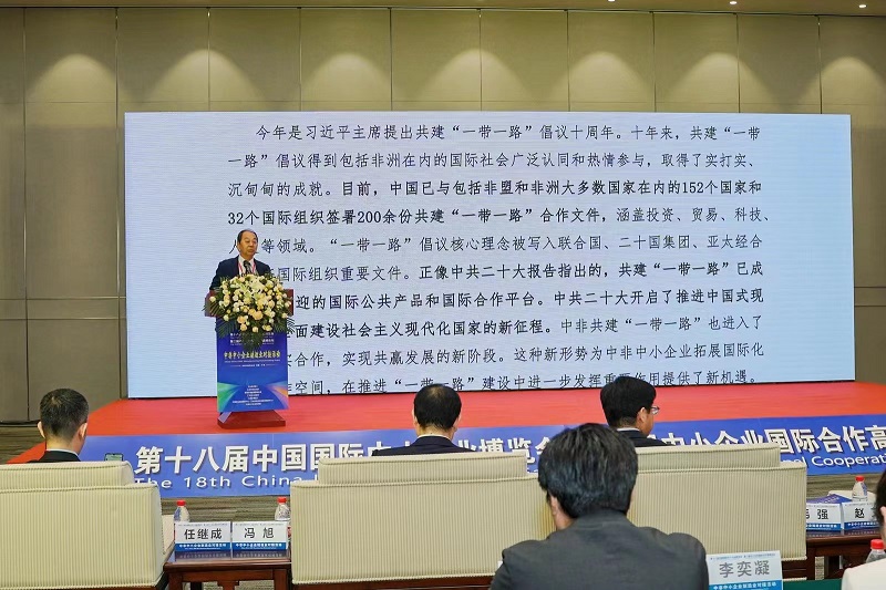 趙艾講到,今年是習(xí)近平主席提出共建“一帶一路”倡議十周年。十年來,共建“一帶一路”倡議得到包括非洲在內(nèi)的國際社會廣泛認(rèn)同和熱情參與,取得了實(shí)打?qū)?、沉甸甸的成就。中共二十大開啟了推進(jìn)中國式現(xiàn)代化,全面建設(shè)社會主義現(xiàn)代化國家的新征程。中非共建“一帶一路”也進(jìn)入了深化務(wù)實(shí)合作,實(shí)現(xiàn)共贏發(fā)展的新階段。這種新形勢為中非中小企業(yè)拓展國際化互利合作空間,在推進(jìn)“一帶一路”建設(shè)中進(jìn)一步發(fā)揮重要作用提供了新機(jī)遇。