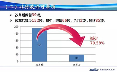 指出在這些事項(xiàng)中,合并取消的事項(xiàng)有14項(xiàng),實(shí)際基本不存在的事項(xiàng)有8項(xiàng),無實(shí)際意義的事項(xiàng)有10項(xiàng),處罰、監(jiān)制的事項(xiàng)有14項(xiàng)。
